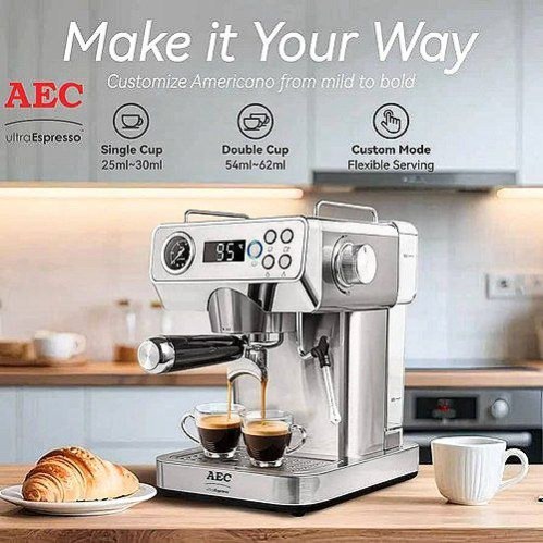 اگر به دنبال یک دستگاه با کیفیت برای تهیه قهوهای خوشطعم و حرفهای در خانه یا محل کار هستید، اسپرسو ساز AEC مدل ۵۱۵۴ یکی از بهترین گزینهها برای شماست. این دستگاه با طراحی زیبا، بدنهی استیل ضدزنگ و ساختاری مقاوم، علاوه بر دوام بالا، جلوهای مدرن به آشپزخانه شما میبخشد. اسپرسو ساز AEC مدل ۵۱۵۴ مجهز به پمپ فشار قوی است که عصارهگیری دقیق و عطر واقعی قهوه را تضمین میکند. همچنین با داشتن نازل بخار قدرتمند، امکان تهیه کف شیر غلیظ برای نوشیدنیهایی مانند کاپوچینو و لاته بهراحتی فراهم است.